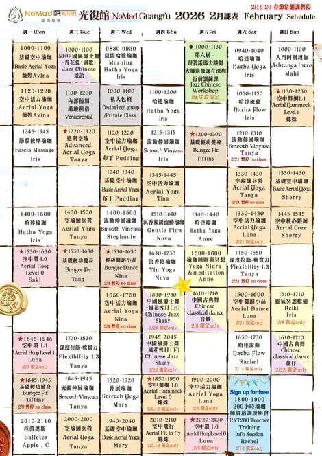 最新課表Schedule